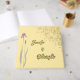 This elegant watercolor iris design with gold foil stars and a butter yellow background creates a wedding guest book to cherish. The theme uses a soft minimalistic floral watercolor painting and gold foil stars with the bride and groom's names in gold . The design is minimalistic yet stylish. These guest books can come with a variety of page options allowing for you to combine guest messages with photos and other keepsakes to remember your wedding for years to come. This guest book with the soft iris design is part of a range of wedding stationary and supplies using the same lilac/purple watercolor and butter yellow.