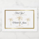 Thank your guests for celebrating with you on your special day with these modern black, white and gold mini sparkling wine labels featuring the words "Thank you for celebrating with us" and an artistic golden palm tree and elegant gold foil frame over a white background. Easily personalise them with the provided templates for the bride and groom's names and wedding date. If you need help or matching items, please contact me.