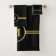 Elegant gold Personalised Monogram on black Bath Towel Set
