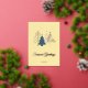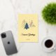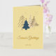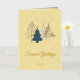 Send your holiday wishes in style with this elegant personalised Christmas card and matching envelope set. Featuring a modern graphic Christmas tree design in shimmering gold against a soft butter yellow background. The Seasons Greetings message and the year can be customised with your own preferred Holiday greeting. The colours and design are both classic and yet contemporary,