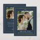 This Classic Elegant Gold Wedding Photo Thank You Card is simple and versatile. It features a chic navy blue and white design with a monogram, vertical photo, simple gold frame and minimal editable Thank You and names on the front. The back has a second horizontal photo with an editable personal message and script signature. Click the edit button to customise this design.