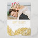 Elegant Gold Pine Needles and Pine Cones Photo Foil Holiday Card
