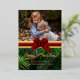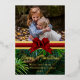 Elegant Gold Pine Red Bow Christmas Photo Foil Holiday Card