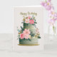 A beautiful birthday card featuring a tiered cake adorned with soft pink flowers, lush greenery, and subtle gold accents. This elegant and feminine design is perfect for celebrating someone who appreciates beauty, warmth, and a touch of floral charm.