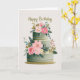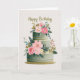 Elegant Gold, Pink & Green Floral Birthday Cake Card