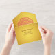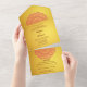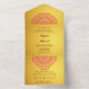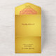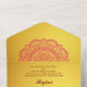These "Elegant Gold Pink Indian Wedding All in One Invitations" are designed with an easy to tear off perforated RSVP postcard. Just simply fold each card into the outlined shape, and then seal and send - no envelope needed for shipping.