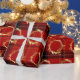 Elegant Gold & Plaid Christmas Wreath Pattern Wrapping Paper