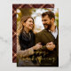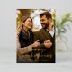 Happy Thanksgiving couple photo card features an elegant script font in gold foil and a tartan/plaid pattern on the back in rich brown fall colours. This minimal, simple and stylish card is ready for you to customise with your own photo and message.