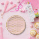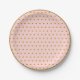 Beautiful paper plate with elegant gold polka dots framed with a golden circle on pink background. Ideal for all celebrations.