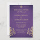An elegant rich purple and gold damask Rehearsal invitation. This invitation is part of a set.
