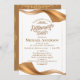 Celebrate a remarkable career milestone with this elegant retirement party invitation. Featuring a luxurious gold ribbon motif and ornate decorative borders, this design exudes sophistication and class. The flowing gold accents create a sense of celebration and achievement, perfectly honoring the retiree's years of dedication and service. This invitation sets a refined tone for an unforgettable retirement party, making it a beautiful keepsake for guests and the guest of honor alike. Let this exquisite design be the first step in planning a memorable event.