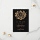 An elegant wedding save the date of a bouquet of gold roses on black.