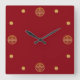 This stylish and modern custom square clock features 4 round longevity motifs that are most often associated with birthday celebrations. The colours are non-metallic gold on a festive dark red colour background, which may be changed through the colour palette option to achieve a very different look. Over the centuries, the longevity motif has been used extensively in garments, furniture, architecture and folk art in China as a way to bring blessings into the home. This elegant and sleek square clock is a very nice housewarming gift for someone special. The classic element reinterpreted in today's colours will complement many styles of home decor including traditional, contemporary and transitional. It is ready to be customised with a name, a monogram or a short greeting if desired.