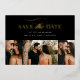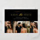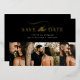 An elegant wedding photo save the date card featuring 3 photos, hand lettered calligraphy script and simple chic editable text on the front. The back has a wedding website. Click the edit button to customise this design.
