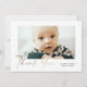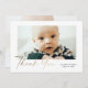 Elegant Gold Script Baby Photo Thank You Card. The back includes a message from the family and a 2nd photo. Click the edit button to customise this design with your photos and details.