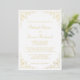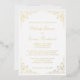 This elegant vintage-inspired formal wedding invitation features the text in real gold foil script and serif fonts, framed by a delicate vintage gold vine motif.