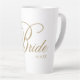 Bride latte mug. Elegant gold script Bride with wedding date in classic block text at bottom right. The wedding date can be removed by clearing the text field, or personalised with bride name or bride and groom initials.