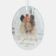 Elegant Gold Hand Lettered "Merry Christmas" Script Family Photo Ornament. Features your favourite family photo, "family name" calligraphy text in handwritten script, with Merry Christmas text and year. Easy to personalise it. Photo tip: crop your photo to square form before upload it.