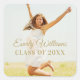 Celebrate the graduate with these elegant graduation party square stickers featuring a personalised photo, the graduate's name in flowing gold script, and their class year. Easily personalise with your favourite graduation photo and the graduate's name for a polished finishing touch on party favours, gift bags, envelopes, and thank you notes. Perfect for high school, college, and university graduation parties.