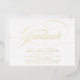 Celebrate your milestone with these elegant gold foil graduation party invitations featuring "Graduate" in a shimmering calligraphy script. Personalise the sophisticated design with the graduate’s name, school, graduation year, and party details for a custom touch. The luxe gold foil lettering contrasts beautifully against the classic black background, while the back of the invite features a sleek, solid black design. Perfect for high school and college graduates, these stylish invitations set the tone for a chic and memorable celebration.