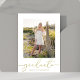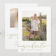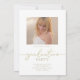Elegant gold script graduate photo announcement featuring luxurious calligraphy typography and a customisable senior portrait. Perfect for high school or college graduation celebrations, this refined design combines timeless gold accents with modern typographic style. Showcase your graduate’s photo and details in a beautifully crafted keepsake that friends and family will treasure.