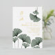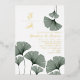 Modern and sophisticated design featuring green ginkgo leaf in watercolor with gold foil calligraphy. Easy to customise with your own details.