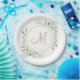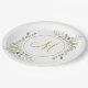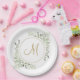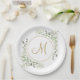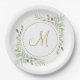 Elegant Gold Script Monogram Greenery Paper Plate