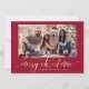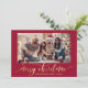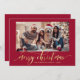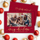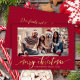 Elegant Gold Script One Photo Red Christmas Holiday Card