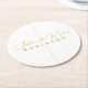 Elegant Gold Script Personalised Monogram Wedding Round Paper Coaster