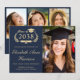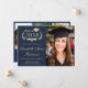 Announce your graduate's academic achievement with this elegant dark blue college graduation announcement featuring their portrait, a timeless laurel crest with a grad cap mortarboard and diploma encasing their class year, and classic gold script and serif typography -- creating a traditional look that feels polished and enduring. The clean design showcases the graduate’s name, university, degree, and class year in a clear, sophisticated format -- perfect for sharing milestone news with family and friends. Add 3 additional photos on the back and your personalized message. Fully customizable, this graduation announcement allows you to adjust it for a high school graduate as well.