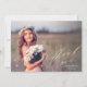 This elegant graduation thank you card features a full photo and elegant calligraphy. "Thank you" is written in pretty gold script in the lower right corner, with the graduate's name and graduation year below. The gold and white typography design overlays a full photo of the new graduate (horizontal/landscape orientation). The back is blank and can accommodate additional photos or a personalized note to recipients.