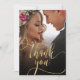 Modern Boho Chic Gold Calligraphy Script Photo Wedding Thank You Card. Stylish wedding thank you template featuring a full vertical photo on the front with the text "Thank You" in a whimsical swirly hand lettering typography swash tail font script faux gold foil overlay on the picture. 2-sided card with pre-made thank you message at the reverse side. Easily to personalise your name and thank you message. If you prefer to handwrite your note, just delete the sample text to make more space. If You need help or matching item, please contact to me!
