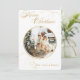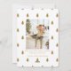 The modern design features a stunning, single photo layout beautifully framed by a classic circle. Above your picture, a stylish "Merry Christmas" message is rendered in beautiful gold calligraphy. The reverse side complements this timeless look with a minimalist white background and a whimsical gold Christmas tree pattern.