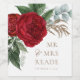 Elegant Gold Script Red Floral Mr & Mrs Wine Label