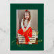 Elegant Gold Script Rich Green Frame Photo Foil Holiday Card