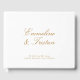 A simple personalised wedding guest book, with an elegant gold script typography. Wedding guest signing keepsake book to greet your guests at the wedding reception, or a bridal shower, or engagement party, to be your keepsake forever. If you would like to change the colours of fonts or font style, after personalising simply click on "edit further", select your type and see the colour palette on the right, and the font choices.