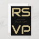 Elevate your wedding invitations with our Elegant Gold Script Wedding RSVP Card on Black. This sophisticated card features the word "RSVP" in large, serif gold lettering against a sleek black background, creating a stunning visual impact. The elegant gold script typography for the personalised reply date adds a touch of refinement to your special day.