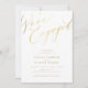 Simple minimal chic whimsical faux gold calligraphy clear white we're engaged script engagement party invitation.