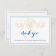 This elegant coastal design features a stylish gold seashell and waves with a blue border, personalised with your names. Reverse side features your custom personal message. Perfect for beach, summer, or nautical theme weddings. Design©Rosalind Moore, Cherry Lane Designs.