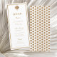 Refined and timeless, this wedding menu card features an elegant gold seashell accent and classic type layout. Perfect for coastal or destination weddings with a sophisticated theme. Personalise with your names and menu selections for a polished tabletop detail.
