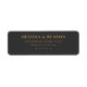 These return address labels feature a sophisticated and elegant design with a deep charcoal grey background and metallic gold text. The layout is clean and minimalistic, utilising a serif font that adds a touch of formality and timelessness to the overall look. Perfect for weddings or formal events, the balanced composition and luxurious colour palette convey an air of understated elegance, making these labels ideal for those seeking a classic and refined aesthetic.