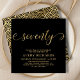 Elegant Chic Black and Gold Seventy Script 70th Birthday Invitation. This modern birthday party invitation template features stylish „seventy” text in huge faux gold foil swirly handwritten calligraphy (or typography) script with swash tails, party details in gold colour on black background. At the reverse side faux gold foil swirling wave circle pattern on black colour background. Perfect for celebrating seventieth milestone birthdays in style, this invitation adds a touch of glamour to any party, for both men and women alike.