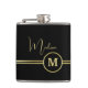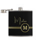Elegant Gold Signature Monogram on Black Hip Flask