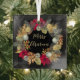 Decorate your black colour scheme Christmas tree with this elegant glass ornament. This ornament features a festive gold silver and red poinsettia wreath on a black background. Buy this ornament as shown with a Merry Christmas greeting in gold or edit to add your own text.