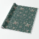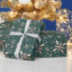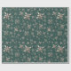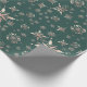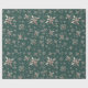 Gift wrap with an elegant gold snowflakes pattern on a green background.