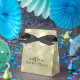 This stylish gift box is a sparkly gold, accented with beautiful script in black, that is easy to personalise, and a pretty black ribbon, making it an elegant choice to hold wedding favours.