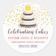 © 2021 Socialite Designs Inc. Bakery packaging seals with a lovely design of gold foil-look confetti and an elegant cake. Customise with your bakery business name to promote your business.