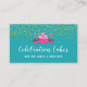 © 2018 Socialite Designs. A beautiful business card that incorporates handwritten script font, gold sprinkles and a cupcake with cake pops design. The font colours are white and a teal background. The background and font colours can be changed by you by customising the design. If you need help with customising this profile card, please do not hesitate to contact Socialite Designs.