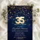 Elegant Gold Stars Navy Blue 35th Birthday Party Invitation