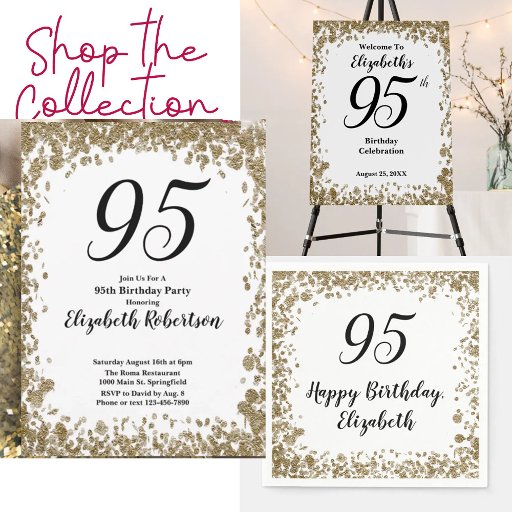 95th Birthday Gold Glitter Glam CelebrationDesigned by Kara Buntin